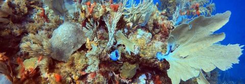The shallow reef areas in Guanaja and surrounding cayes are some of the most vibrant in the western Caribbean. Thick patches of pillar, elkhorn, lettuce and blade coral are interspersed with azure vase, red & green rope and huge barrel and endless encrusting sponges. There are also more purple sea fans per square foot than we have seen anywhere else! This substrate - already stunning in and of itself - is then inhabited by an amazing amount of marine life. Much of it doing its best to hide. All of it bathed in the natural light that makes the colors pop. Don't be in a rush to dive deeper! The shallows are where the true beauty lies and the majority of the fish life!